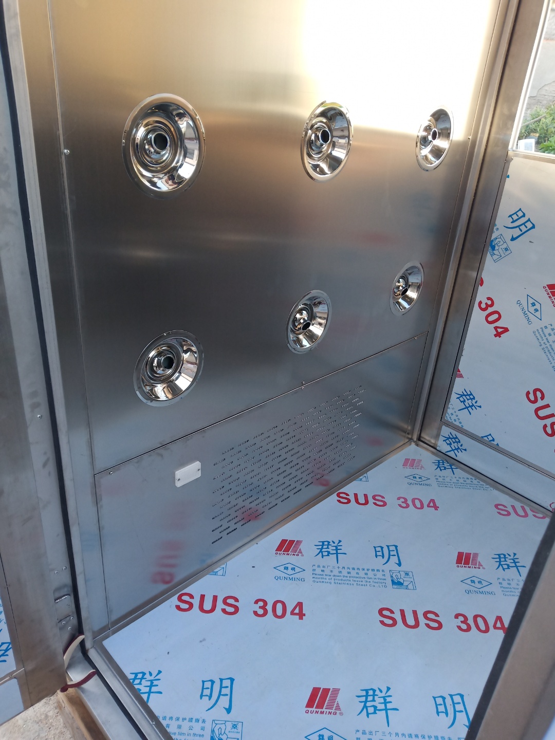 要進入乳制品生產(chǎn)車間前,我們先踩住鞋套機穿上鞋套、換上白大褂、戴上衛(wèi)生帽后,在洗手池旁按著洗消毒圖示完成了清洗、干燥、消毒等工作,然后才被引向生產(chǎn)車間。進入前,我們先一個一個地通過了一個封閉的方寸之間后來才知道就是風(fēng)淋室,風(fēng)吹起,我們被要求抬起手臂不停地轉(zhuǎn)身數(shù)秒。原來,這個過程叫風(fēng)淋用強勁潔凈的空氣,由可旋轉(zhuǎn)的噴嘴從各個方向噴射到人身上,快速有效地清除掉附著在衣服上的灰塵、頭發(fā)、雜屑等。在生產(chǎn)車間的預(yù)處理現(xiàn)場,一塵不染的環(huán)境下其實在需要員工付出不少辛苦的前提下,也需要有匹配得當(dāng)?shù)膬艋O(shè)備。