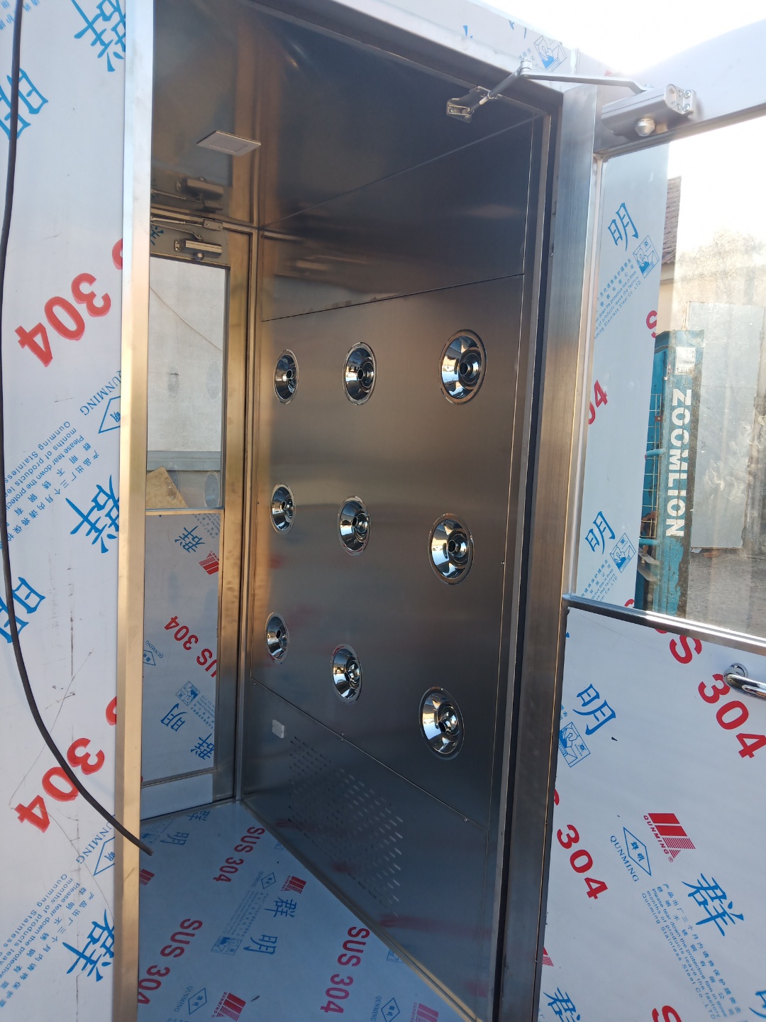 李經(jīng)理說,雖然目前生產(chǎn)車間并不是很大,工人也都屬于放假期間,但只要進入車間,就必須要先經(jīng)過這個名為風(fēng)淋室的設(shè)備,風(fēng)淋室是凈化設(shè)備生產(chǎn)廠家生產(chǎn)的,目的就是為了進入車間前去處身上的灰塵,保證產(chǎn)品的質(zhì)量。